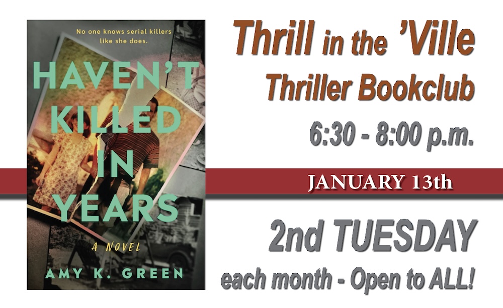 Come join the Thrill in the ‘Ville thriller book club discussion – wine and apps are free, and as always,…
